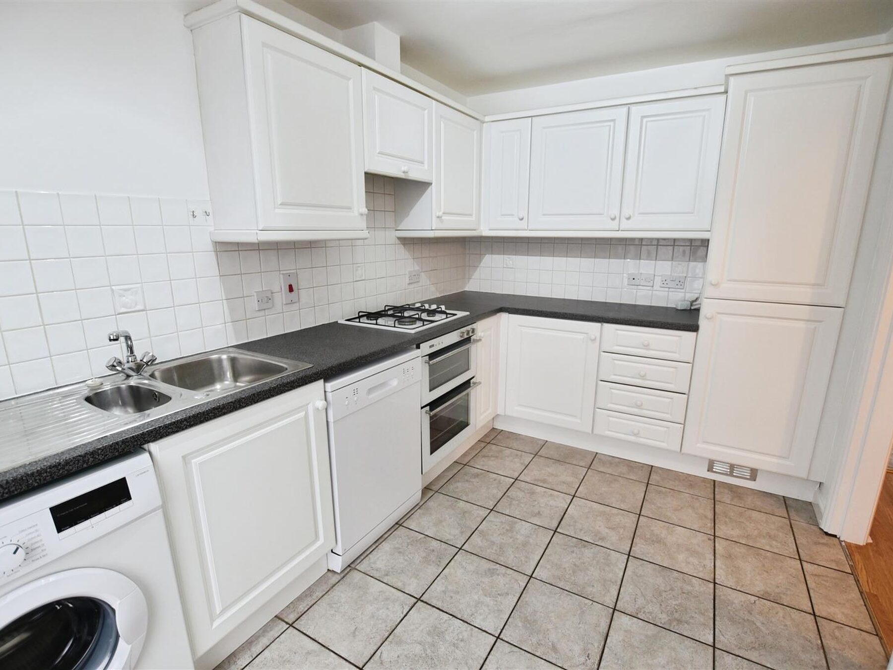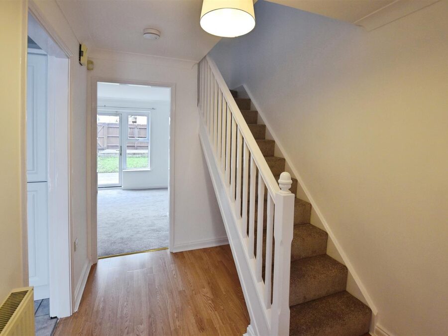 Entering the front door, there is a nice sized entrance hallway opening into the modern kitchen breakfast room with integrated fridge/freezer and dishwasher. The living room spans the back of the property with French door leading to the low maintenance rear garden. Upstairs, there are two double bedrooms and a further single, as well as a three piece bathroom.