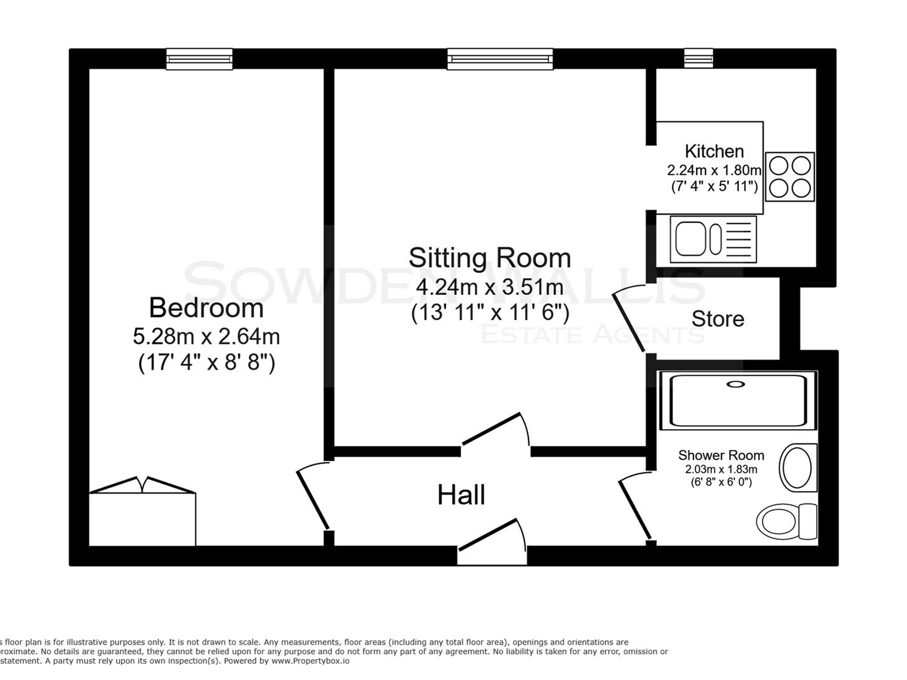 The apartment is accessed via either a lift or staircase and enjoys pleasant side views across the development. Internally, the accommodation includes an entrance hall with useful storage cupboard, a comfortable sitting room, a fitted kitchen, a good-sized double bedroom, and a refurbished shower room finished to a modern standard.