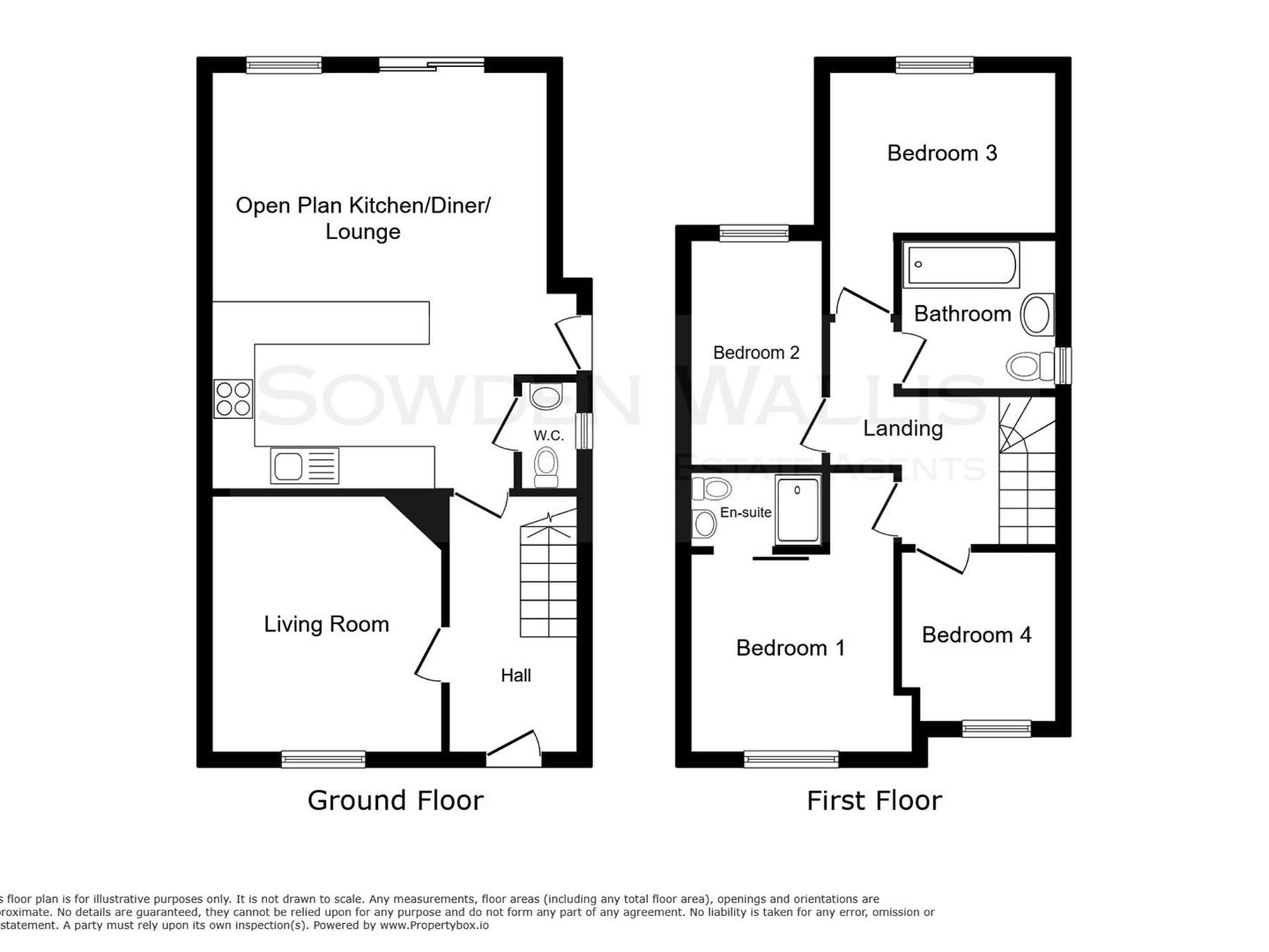 To the first floor are four well-proportioned bedrooms, including a stylish principal bedroom with en-suite, along with a high-quality family bathroom, both finished with modern fittings and attention to detail.