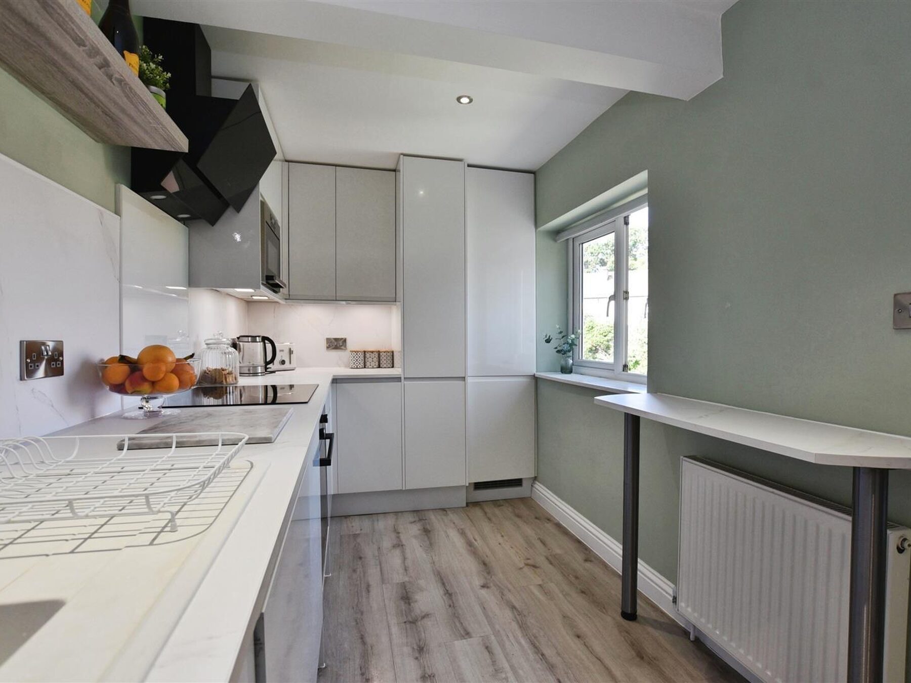 The accommodation comprises an entrance hallway, refitted shower room, lounge dining area opening into the modern kitchen and two bedrooms.